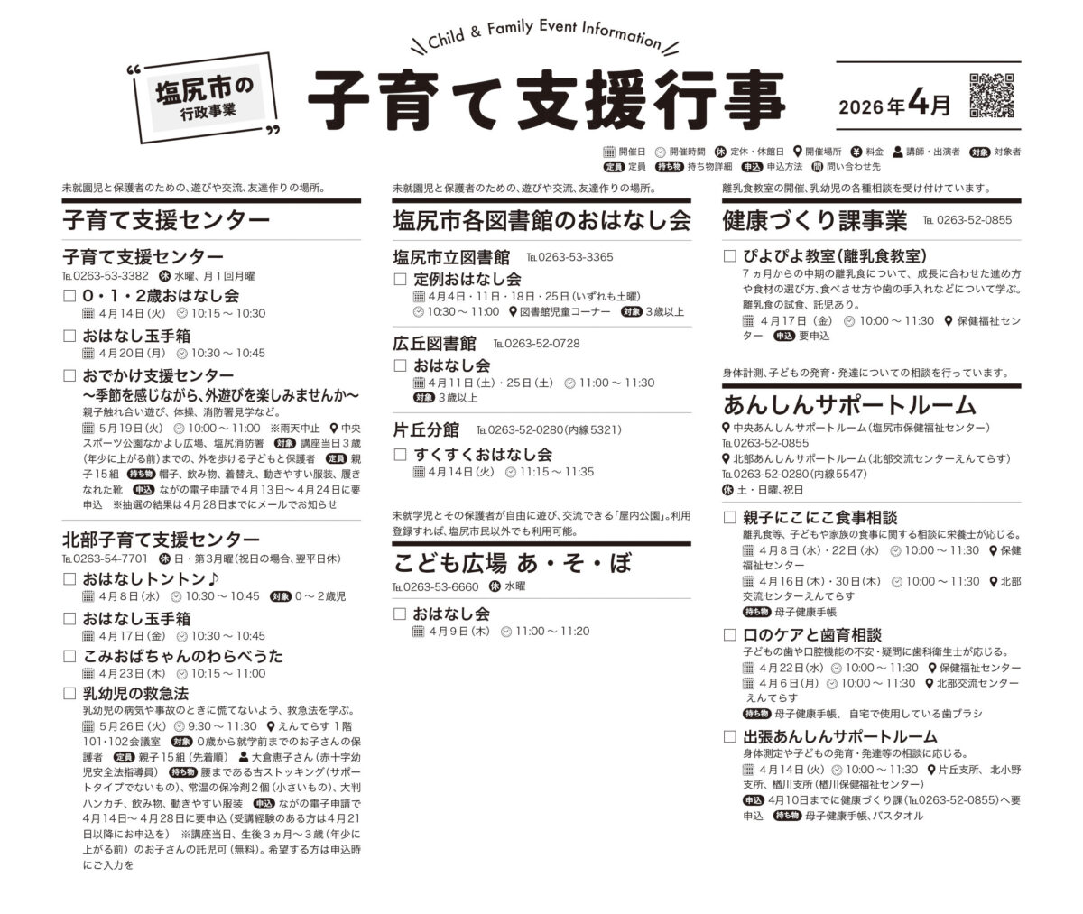 【塩尻市】子育て支援行事情報