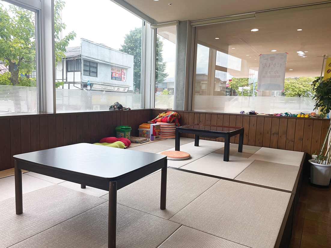カフェスペースや畳の小上がりがあり、コーヒーやホットサンドなどの軽食も味わえるなど、小さい子ども連れでもほっとひと息つける温かさが魅力です。