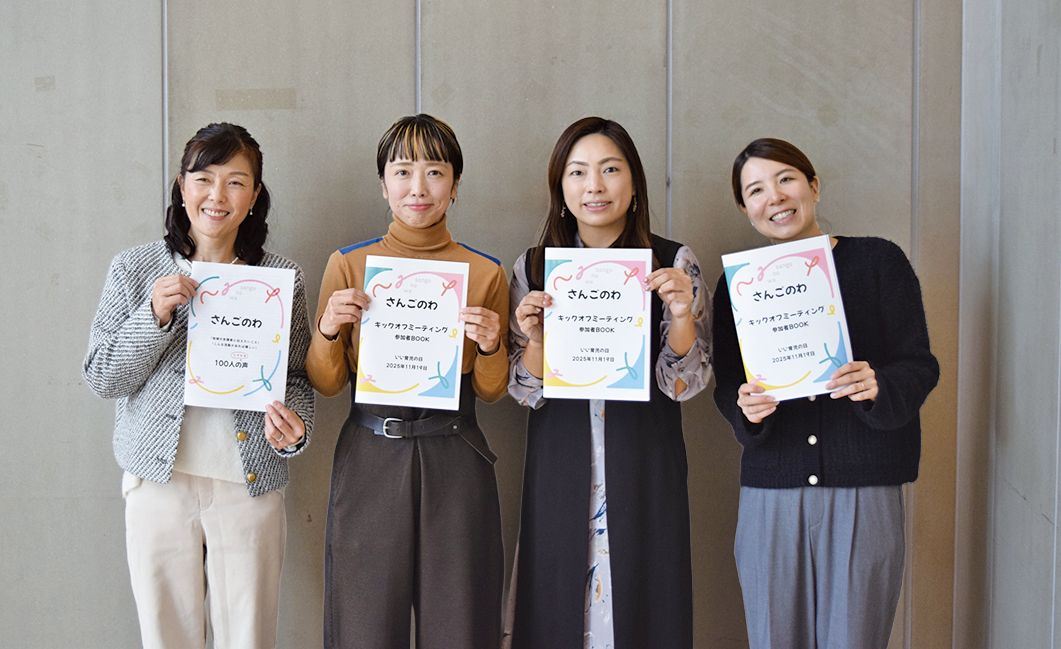 左からこば陽子さん、本柳寛子さん(mamaeats)、高山未央さんら「さんごのわプロジェクト」の実行メンバー。