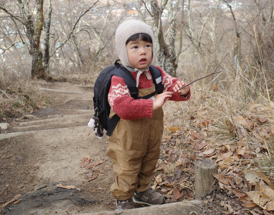1年前、2歳3ヵ月のころには、ほぼ山頂直下まで1時間ほど頑張って歩くことができたのですが、最近3歳2ヵ月のころに登った際は、登山道に雪があり寒かったため、登山口付近でやる気をなくしてしまいました。