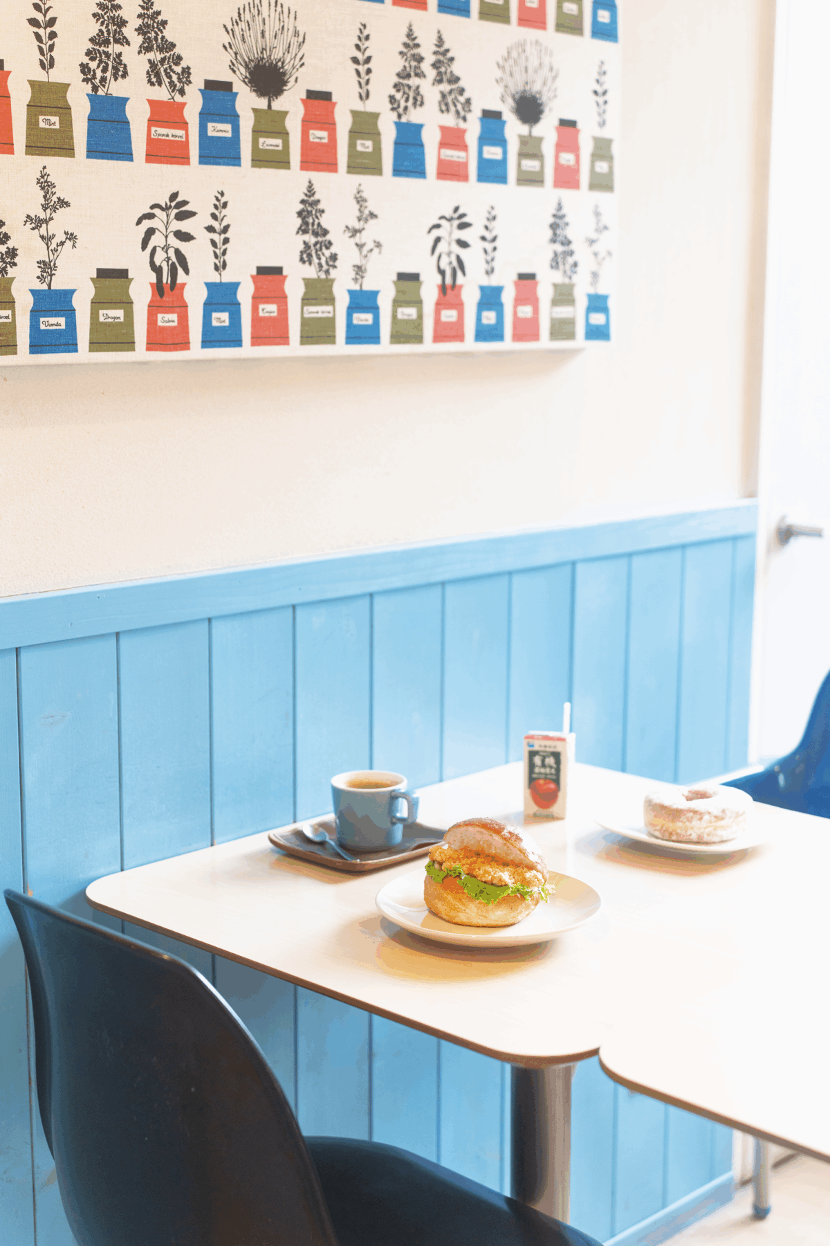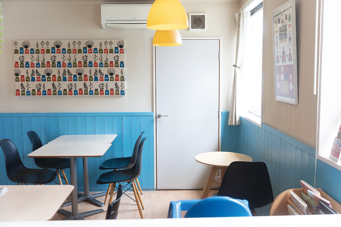 イートインでは、「温かいうちに食べていただきたくて」という思いから、注文してから仕上げるバーガーを用意。子ども用の椅子や絵本が用意された、ファミリーに優しい空間です。