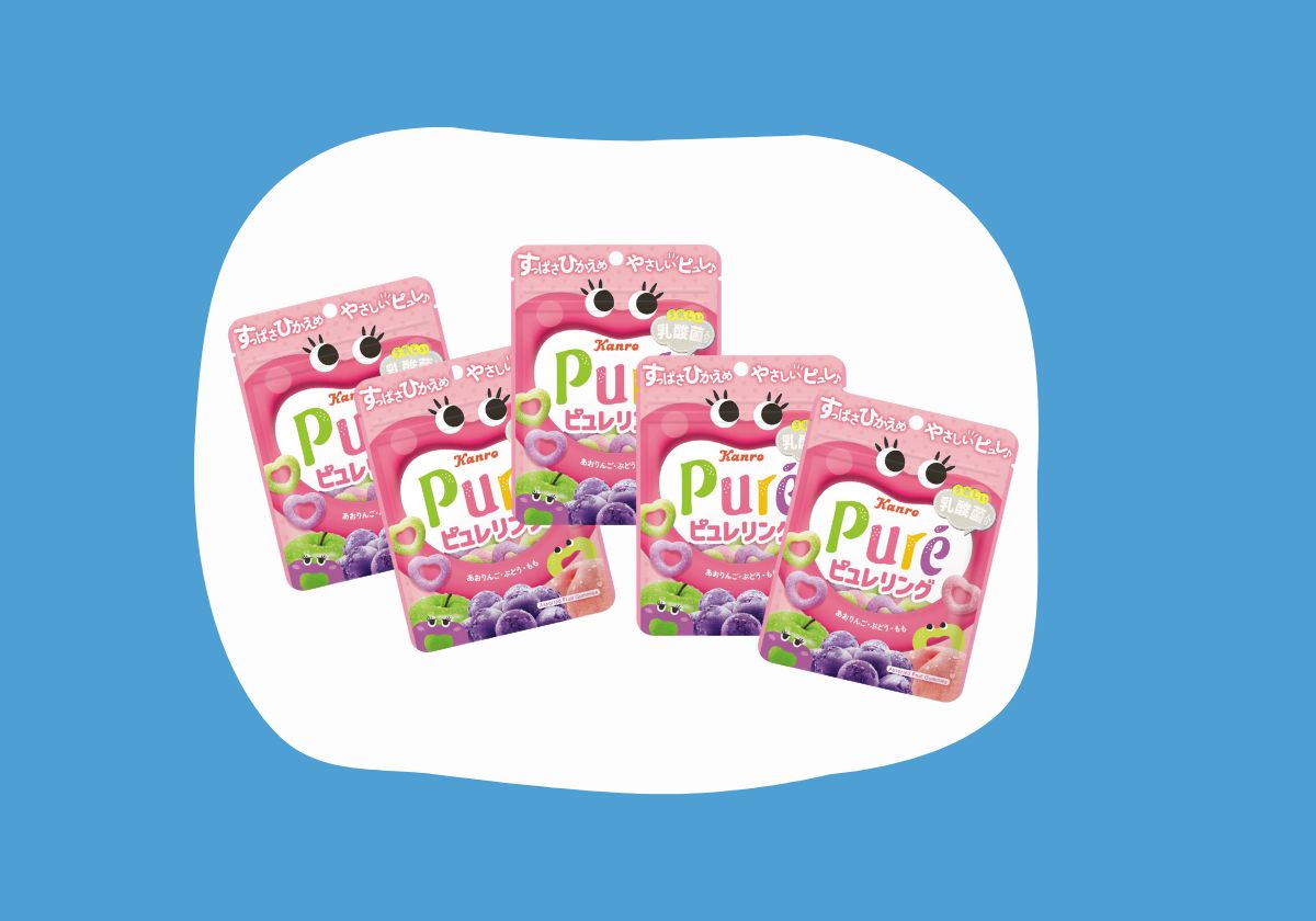 長野県にグミ工場を持つおなじみのカンロが手がける、ハートのリング型ピュレグミ。果実のジューシーなおいしさが広がる3種のフルーツ味が楽しめます。「親から子へ想いをつなげる」をコンセプトに、親子で楽しめるよう、すっぱさ控えめ。歯にくっつきにくく、小さな子でも食べやすいのも魅力♡ 乳酸菌入りにリニューアルし、毎日のおやつタイムにも◎。